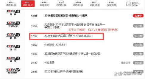 而这一切,都可以在央视体育频道收看到。根据最新的直播安排,当日的赛事将由CCTV-5进行现场直播,直播从17:00开始,节目名称为“2026年国际乒联单打世界杯-小组赛第2轮”。此外,网络平台咪咕视频也会全程直播所有场次的比赛。请广大球迷朋友们调整好频道,准时为国乒健儿加油助威,共同见证他们的精彩表现。