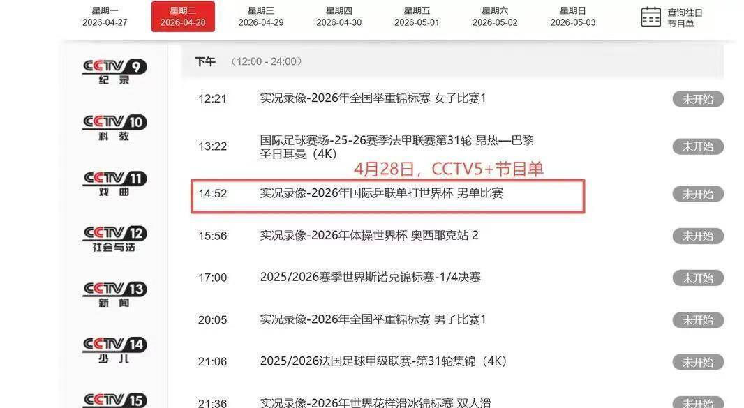 中央电视台体育频道,将从5月2日中国队的首场比赛开始,通过CCTV5和CCTV5 频道,为全国观众进行全程无死角的现场直播,让观众身临其境地感受乒乓赛场的激情与魅力。与此同时,咪咕视频也将通过新媒体平台,进行同步的独家直播,为广大体育爱好者提供更多观赛选择。而在4月28日赛事正式开幕当天,CCTV5频道已安排重播了2026年澳门世界杯的精彩赛事,特别是王楚钦在男单决赛中力克日本选手松岛辉空的巅峰对决,更是为即将到来的世乒赛进行了极佳的预热,成功点燃了观众的期待。