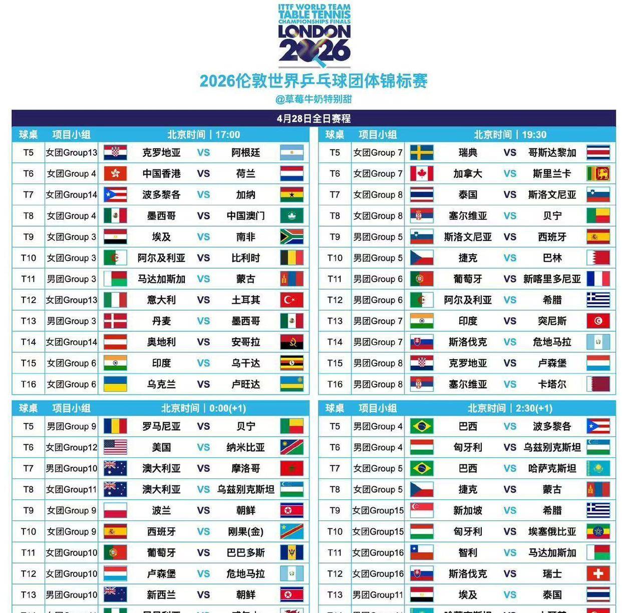 2026-04-30雨燕直播,NBA直播,世界杯直播,足球直播,台球直播,体育直播,世界杯,欧洲杯,苏超直播,村BA直播,苏超联赛,村超,村超直播百年荣耀,起源重燃,2026年4月28日,世界乒乓球团体锦标赛的盛典在伦敦,这座承载着这项运动百年历史的城市,再次拉开了序幕。对于承载着无数荣光的中国乒乓球队而言,这次在发源地的回归,更是肩负着超越自我的使命:男队正向着前所未有的十二连冠纪录发起凌厉攻势,而女队,则将目光锁定在令人瞩目的七连冠伟业之上。
