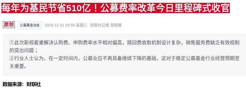 2026-01-07雨燕直播,NBA直播,世界杯直播,足球直播,台球直播,体育直播,世界杯,欧洲杯,苏超直播,村BA直播,苏超联赛,村超,村超直播12月31日公募基金出了个大新闻——三个阶段降费终于收官,以后每年能给咱们基民省510亿!这事我朋友圈好多人在转,有人说“终于盼到降费”,也有人问“省了钱是不是就能赚更多?”其实我想说,降费是好事,但真正影响咱们赚钱的,从来不是省了多少手续费,而是能不能看清市场里的