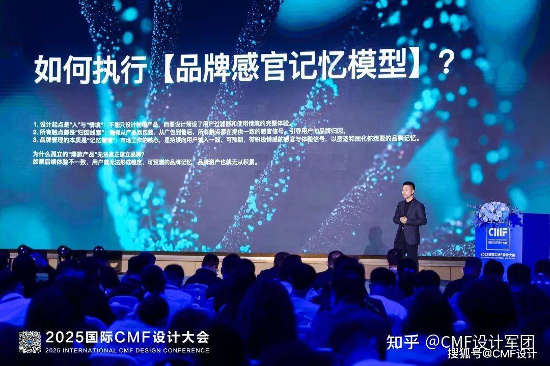 CMF如何推动用户的品牌感知到记忆?国际CMF设计大会创始人、CMF设计军团Samy团长黄明富先生作为CMF行业发展的重要推动者对此进行了系统阐述。他从品牌感知构建的核心逻辑讲起阐述了CMF设计与品牌感知的紧密关系。提出了“品牌感官金字塔”模型与“品牌记忆逻辑框架”。利用该模型框架,企业可以更系统地将品牌核心价值注入CMF策略。