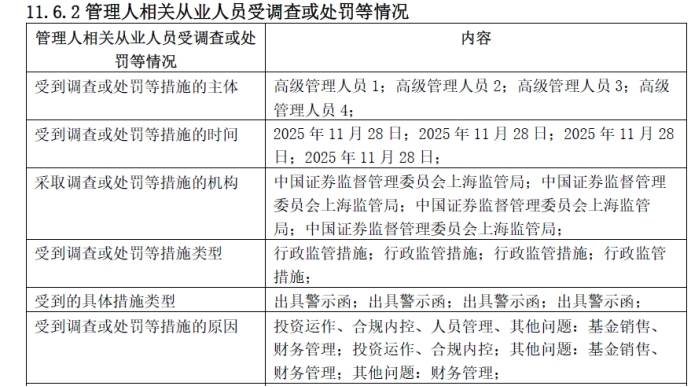 据近期公告披露,2025年11月,华安基金被中国证监会上海监管局处罚,其违规问题涉及投资运作、合规内控、人员管理、公司治理、基金销售及财务管理等多个环节,4名高级管理人员也被出具警示函。